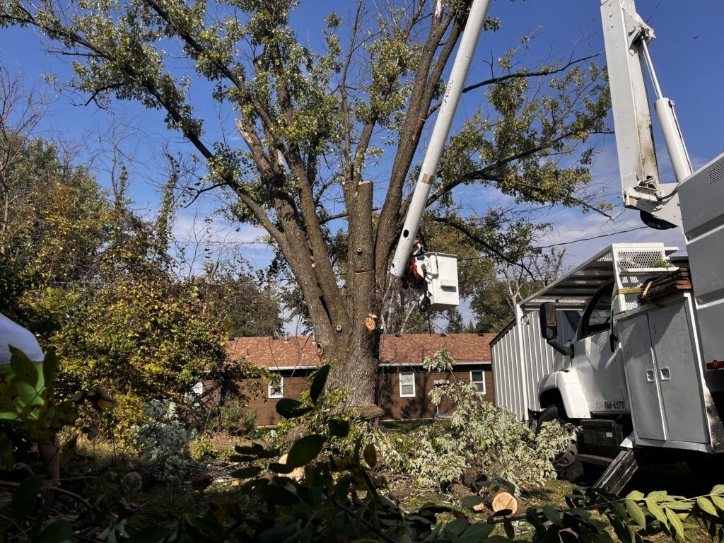 Our skilled team uses advanced equipment, including a 65-ft bucket truck, to remove trees safely and quickly from any property.